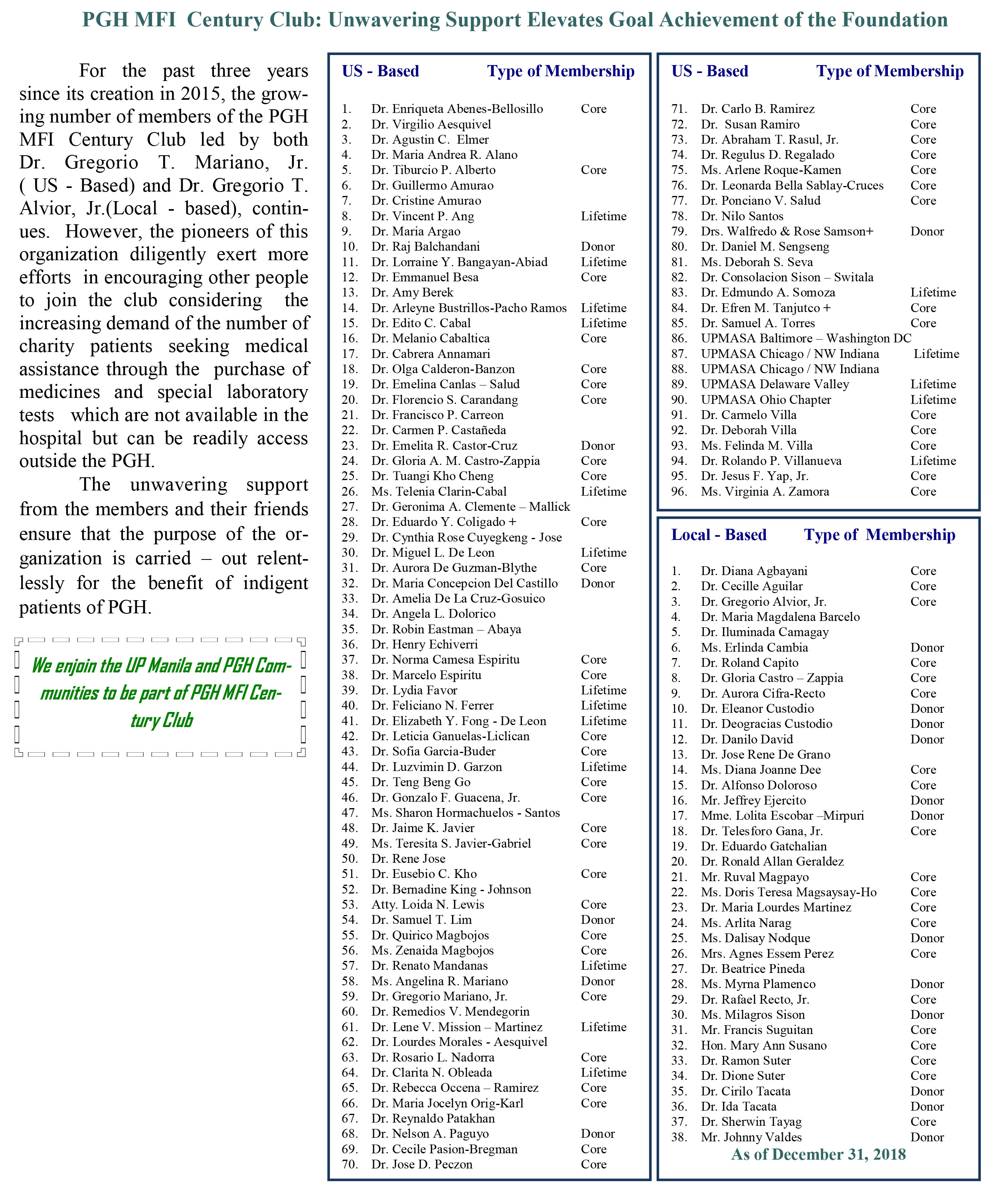 PGH MFI CENTURY CLUB MEMBERS / DONORS